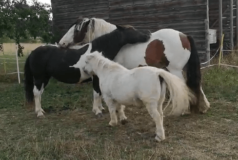 Hier stehen drei Tiere zusammen auf der Weide, die sonst getrennt stehen. Nach anfänglichem Herumjagen und sich gegenseitig Angehen hatte ich hier drei aufmerksame Zuhörer, am Schluss haben sie alle drei sich dann gegenseitig geputzt.